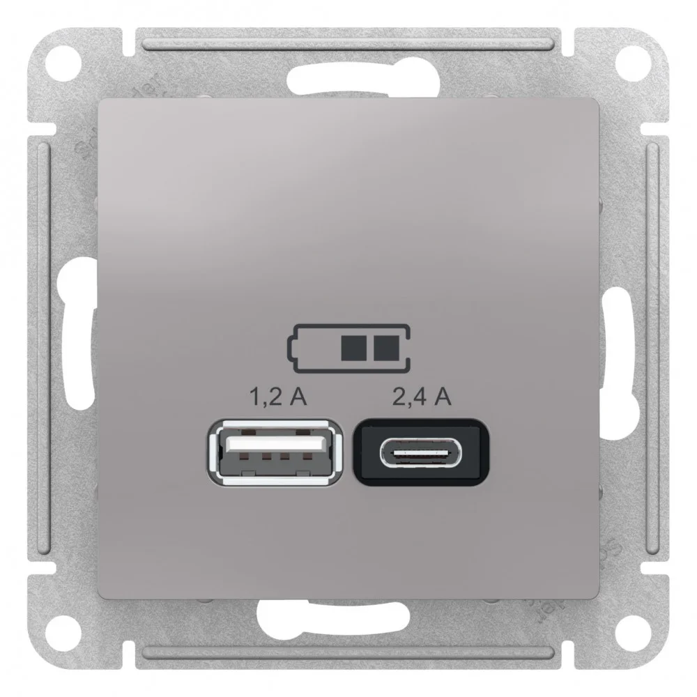 Systeme Electric AtlasDesign Алюминий USB A+С, 5В/2,4А, 2х5В/1,2А, механизм