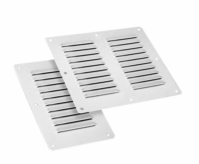 Панель жалюзийная вентиляционная изготавливается из листовой стали.Угол наклона жалюзи рассчитан специально для того, что бы ограничить попадание атмосферных осадков в шкаф.