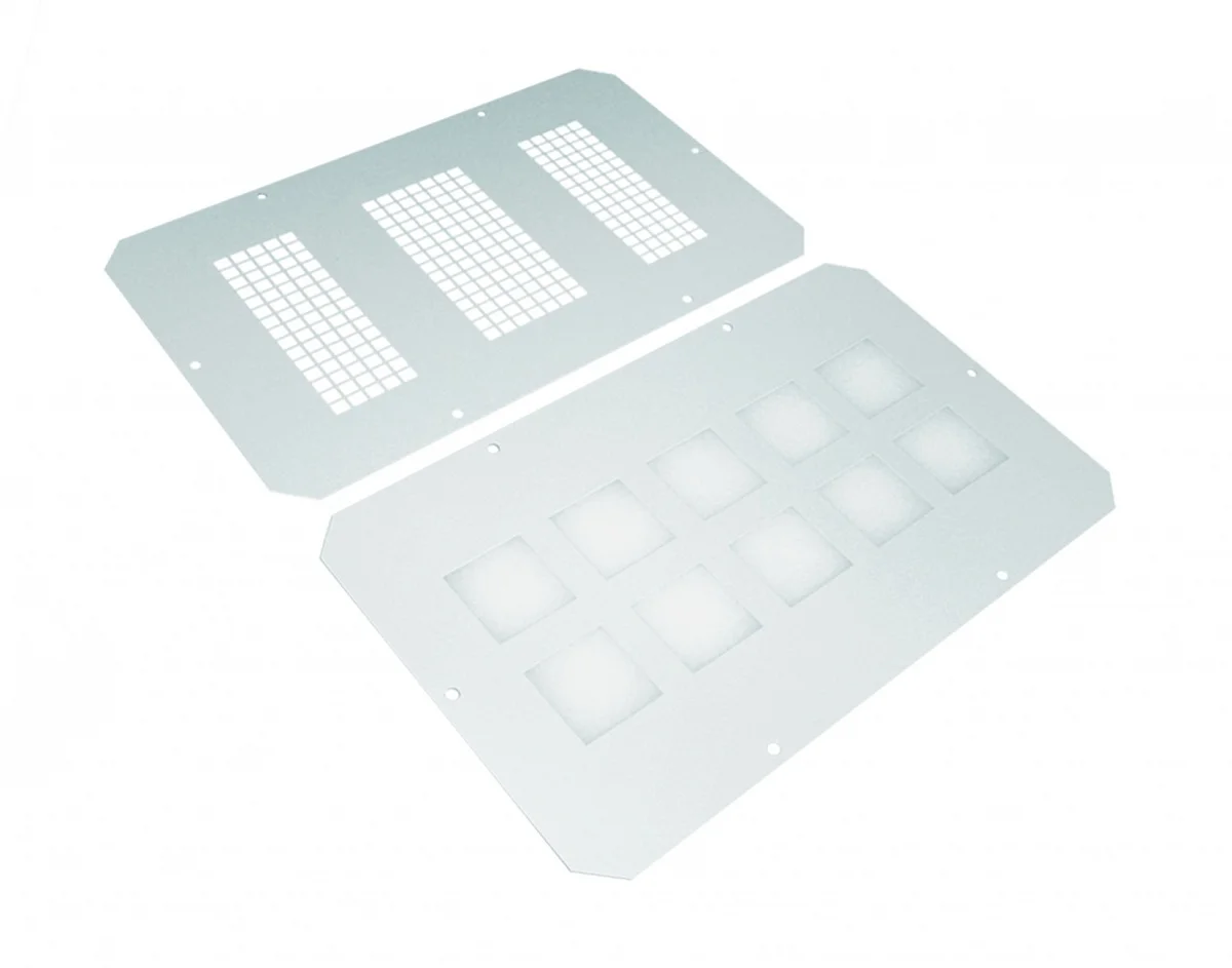 Подходит для установки в потолочную панели или основание напольного сетевого шкафа.На панели выполнена перфорация для вентиляции.