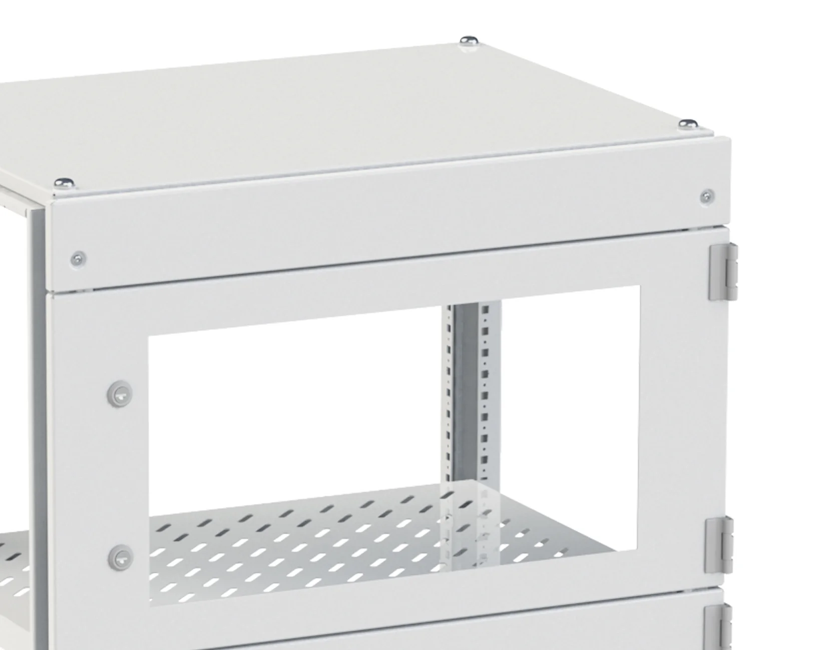 Панель внутренняя глухая поворотная шириной 1000 мм и высотой 500 мм. Применяется вместо обычных глухих пластронов R5FPI*, имеет поворотный замок и позволяет получить доступ к установленному внутри оборудованию при повороте пластрона.