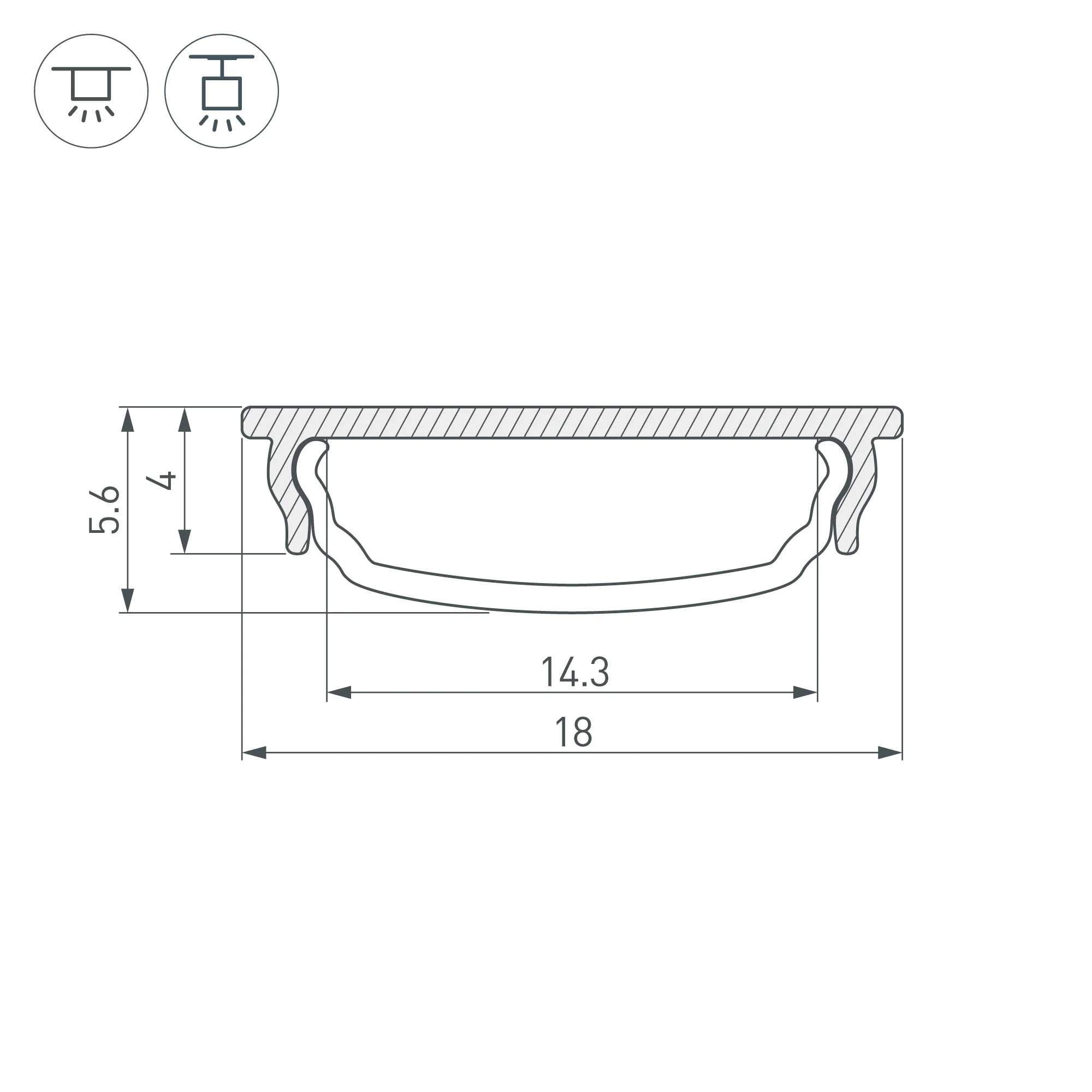 -F- Матовый фигурный экран класса стандарт для профилей PDS, MIC. Материал PC (поликарбонат), светопропускание до 67%. Удобная и легкая установка благодаря особой форме края. Длина 2000мм. Цена за 1м. Кратность заказа поставщику: 2 м.