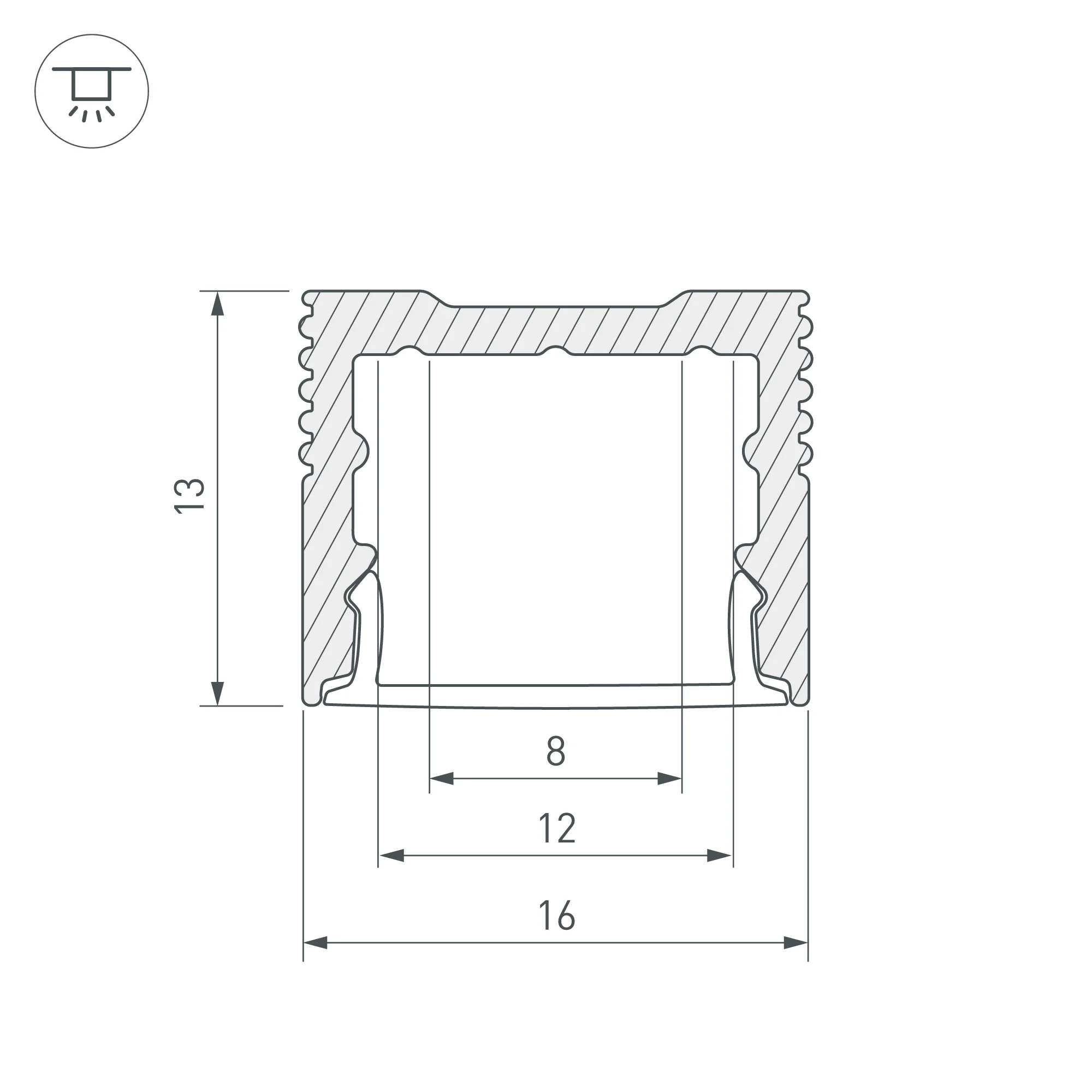 Алюминиевый анодированный профиль для светодиодных лент и линеек. Габаритные размеры (L×W×H): 2000x16x13 мм. Ширина площадки для ленты 12 мм. Экраны, заглушки и другие аксессуары приобретаются отдельно. Цена за 1 метр. Кратность заказа поставщику: 2 м.