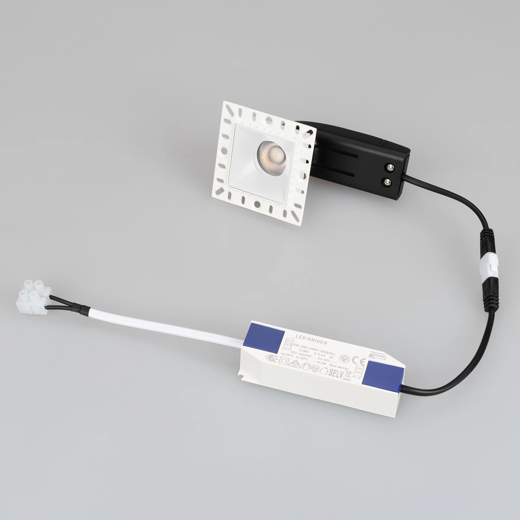 Встраиваемый безрамочный светильник под шпаклевку. Мощность 9 Вт, св. поток 640 лм, 71 лм/Вт, тёплый 3000 K, CRI>90, угол 36°, напряжение питания 230 В. Чёрный квадратный корпус, экран PMMA, степень защиты IP20. Размер: длина 65 мм, ширина 65 мм, высота 63 мм, размер отражателя 40×40 мм. Монтаж встраиваемый, установочное отверстие длина 45 мм, ширина 45 […]