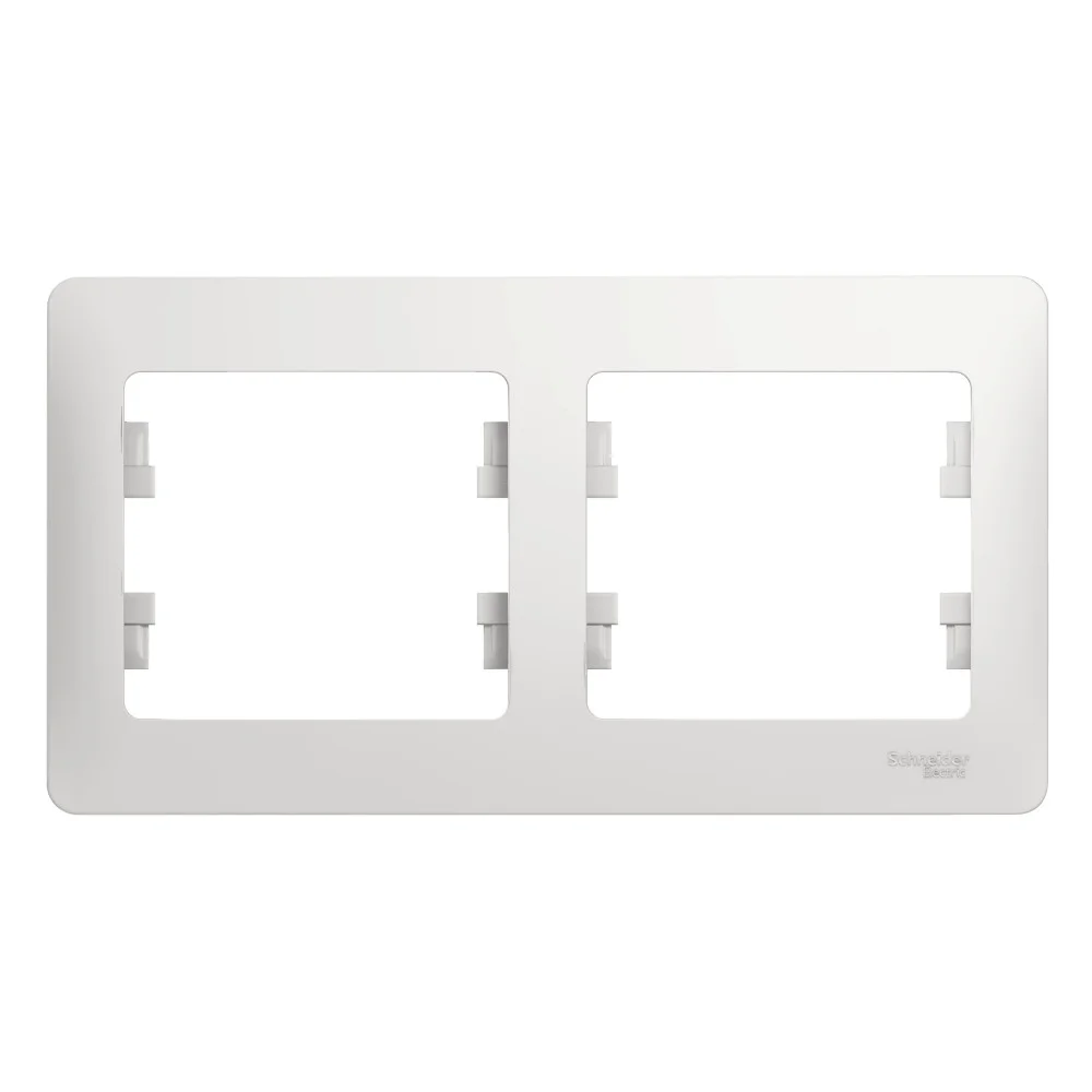 Рамка Systeme Electric (ранее Schneider Electric) серии Glossa (цвет белый) двухместная. — Устанавливается в горизонтальном положении. — Выполнена из материала PС+ASA, стойкого к УФ-излучению и появлению царапин. — Позволяет гармонично вписать электроустановочное изделие в интерьер помещения.